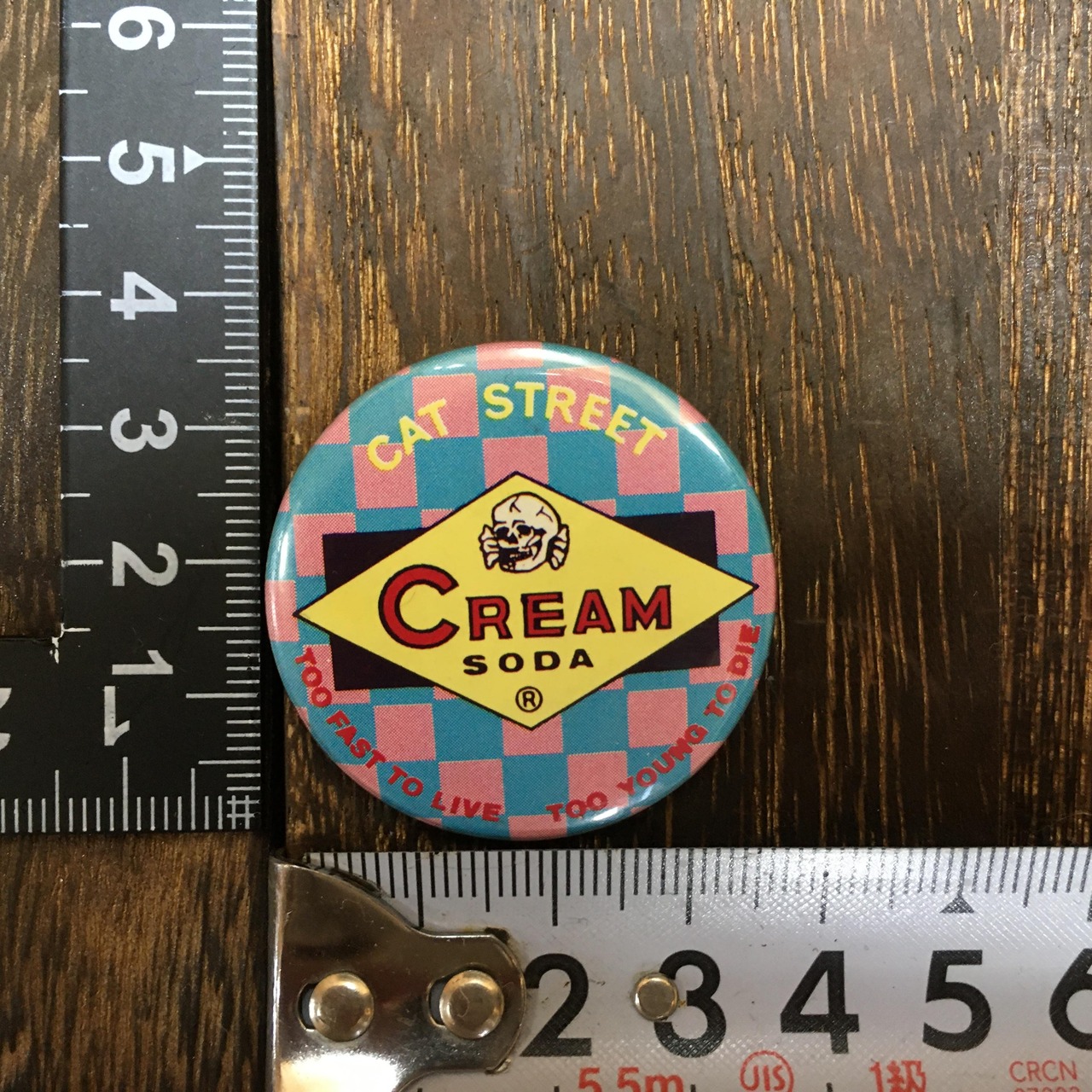 雑貨 クリームソーダ CREAM SODA チェッカードクロ柄 缶バッチ ピンクドラゴン PINK DRAGON ロカビリー