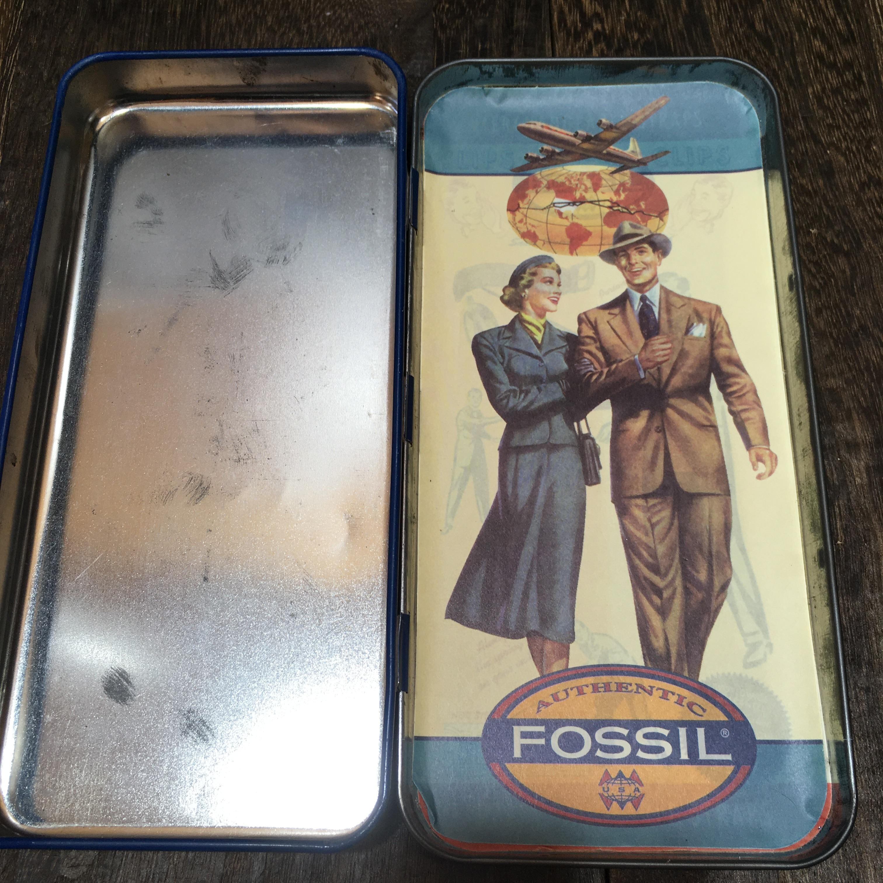 アンティーク 雑貨 インテリア FOSSIL フォッシル 缶 TIN缶 ビンテージ