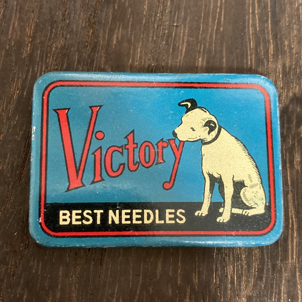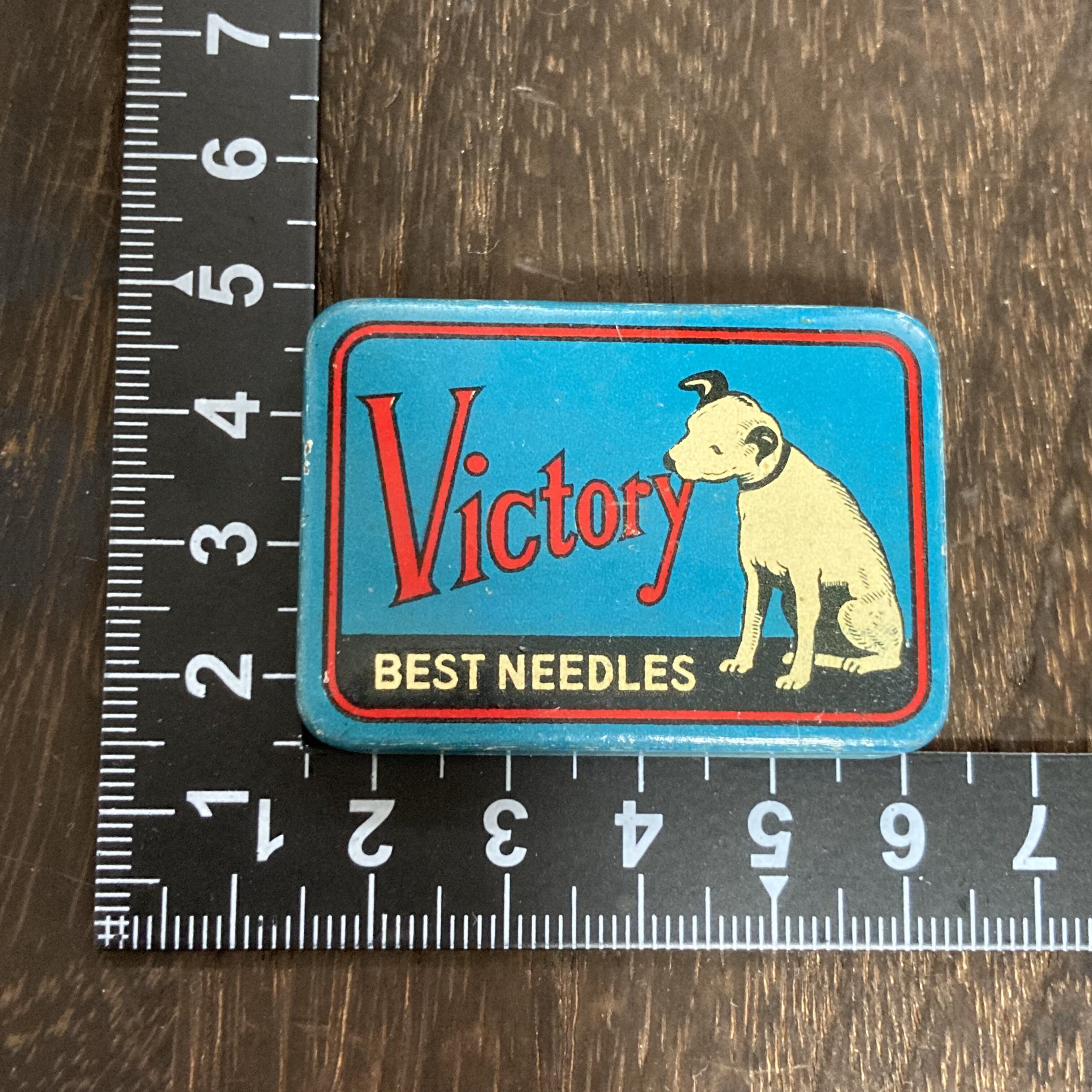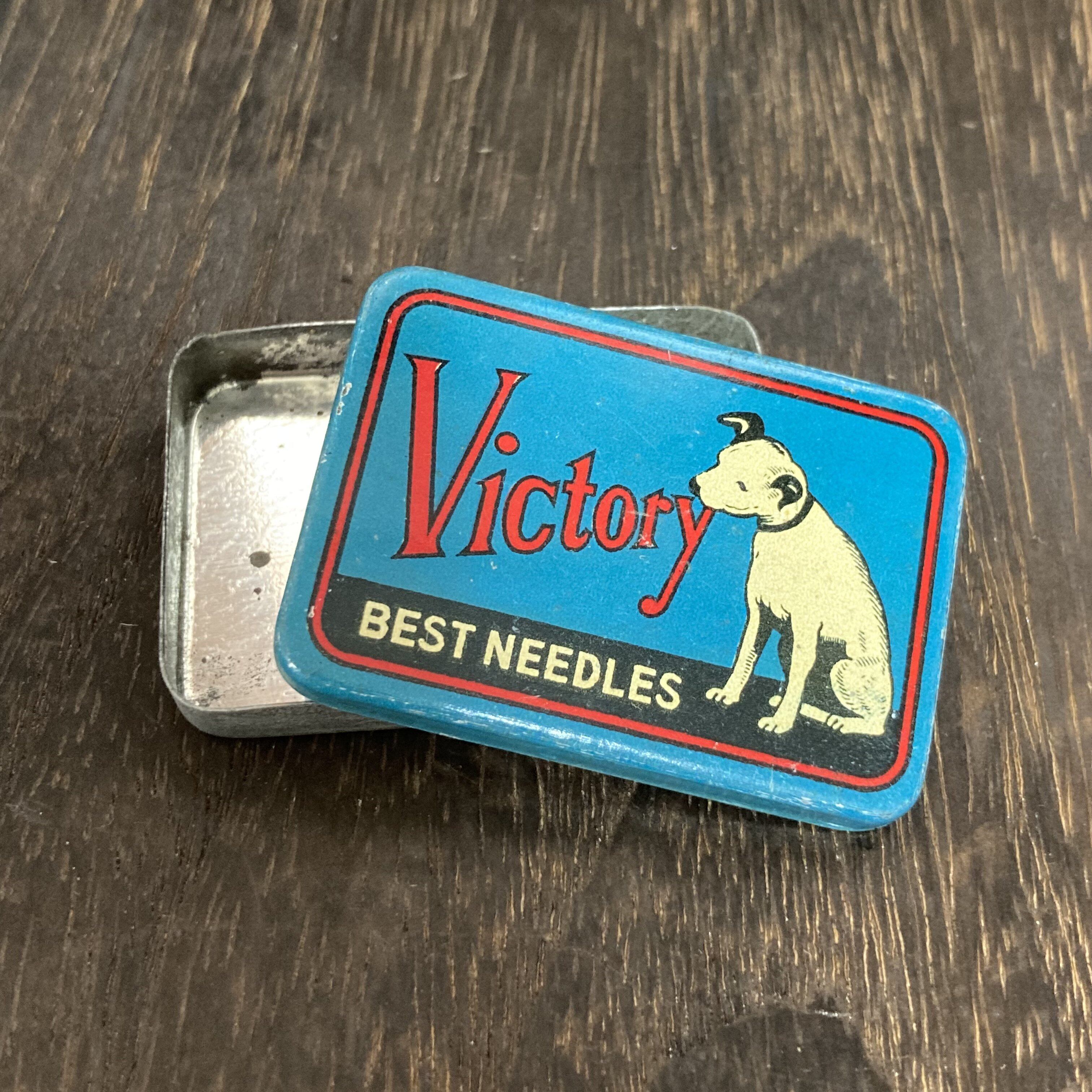 Victory BEST NEEDLES ニッパー犬 アンティーク 当時物 ブリキ缶 ティン缶 蓄音機 針缶 レトロ 雑貨 青 希少