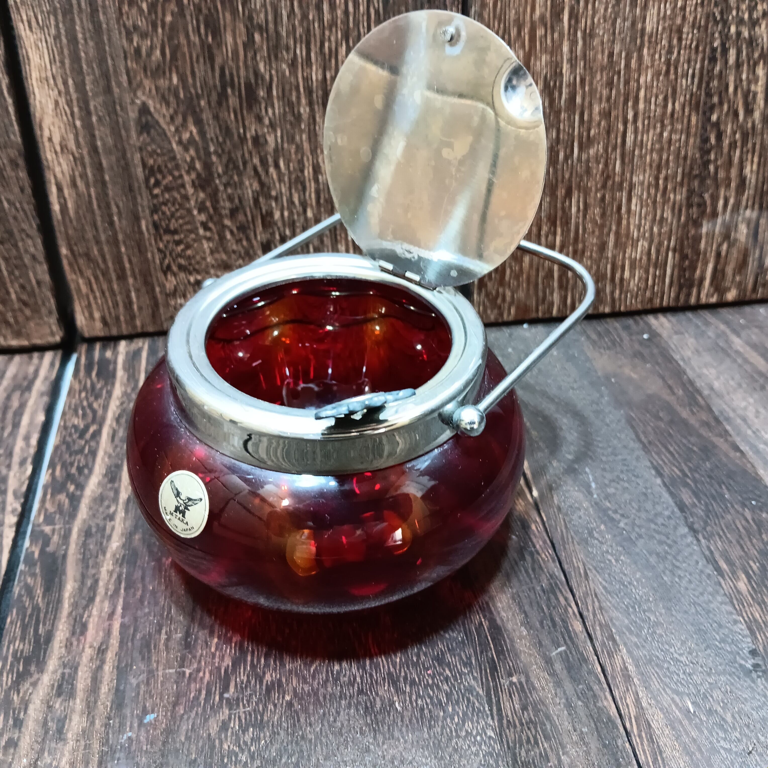 M-TAKA アンティーク ガラス 赤 シュガーポット スプーン付 レトロ